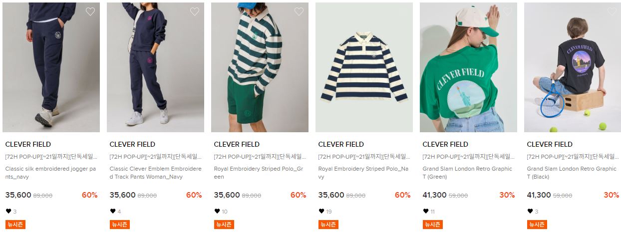 할인 품목 : 티셔츠, 팬츠 등
