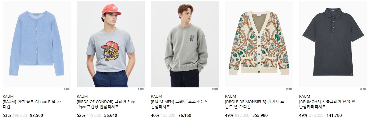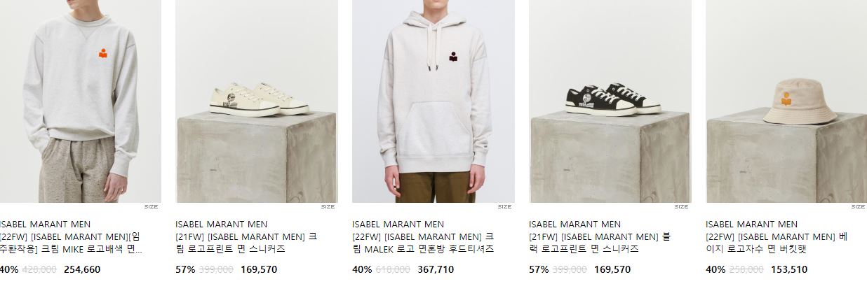 할인 품목 : 모자, 티셔츠, 자켓 등