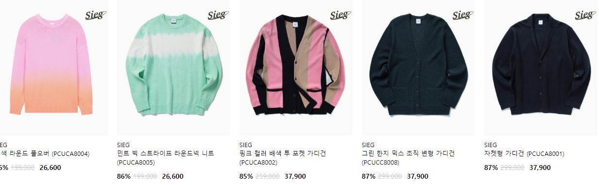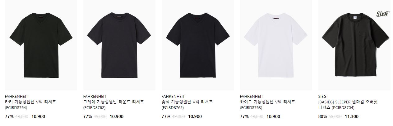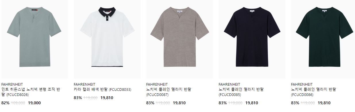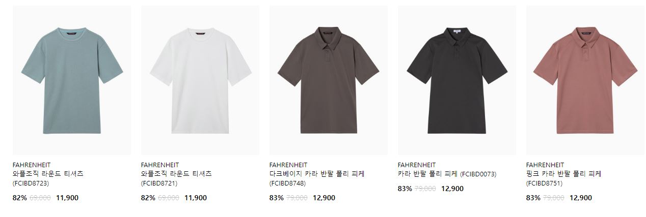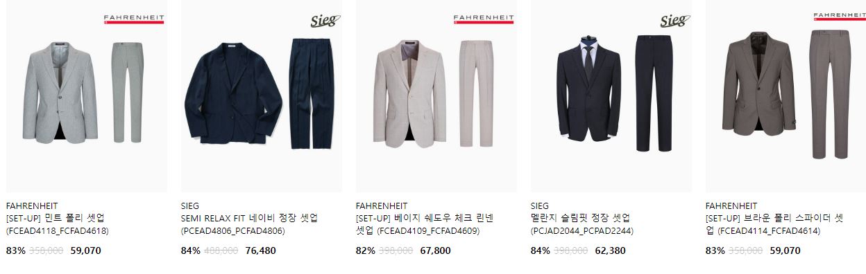 할인 품목 : 정장, 티셔츠, 팬츠 등
