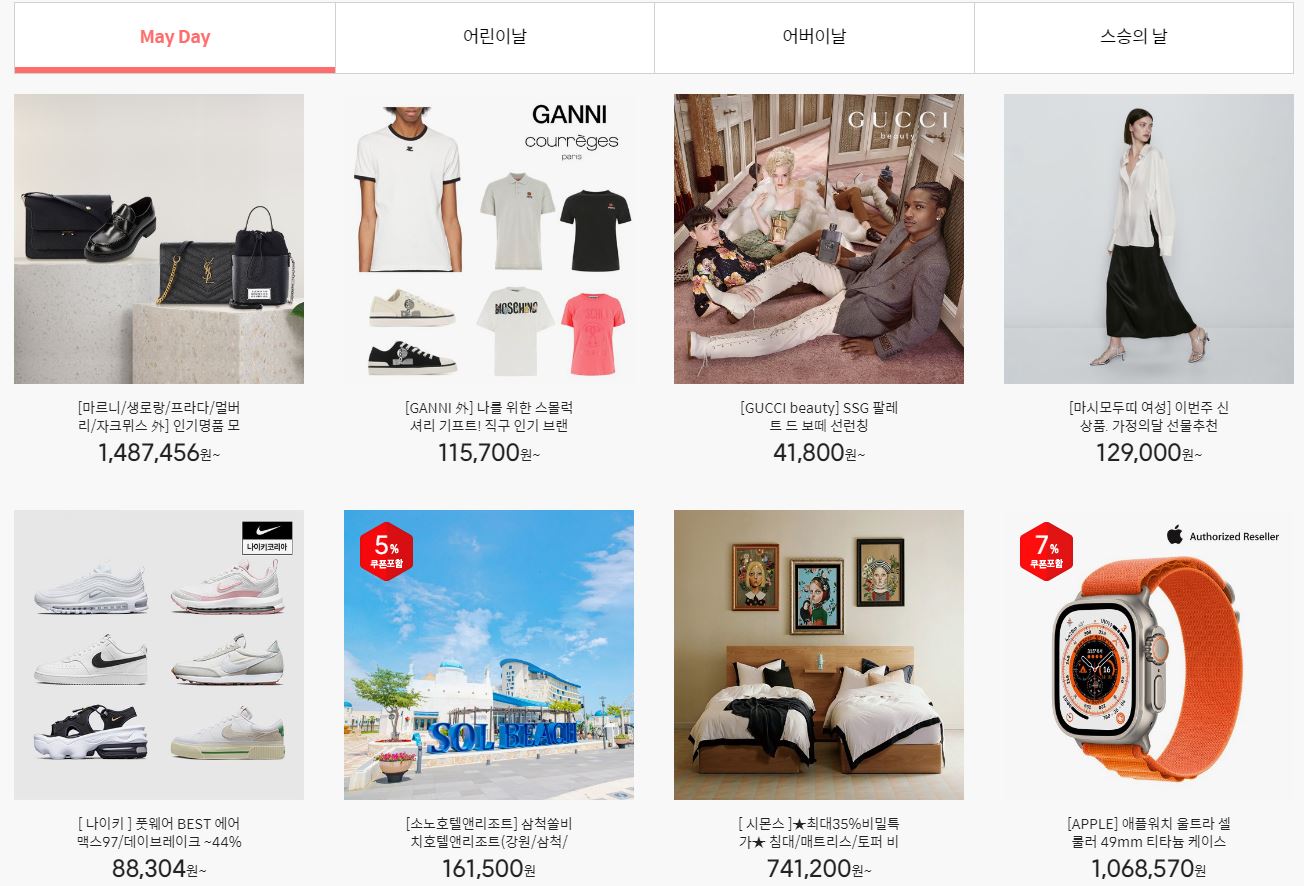 SSG 사이트에서 다양한 이벤트를 진행하네요.