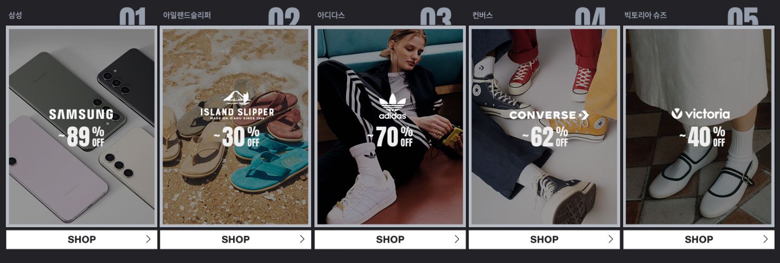 할인 품목 : 의류, 신발, 가전 등
