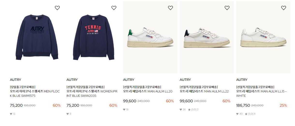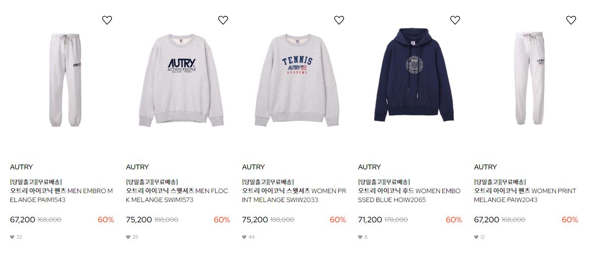 할인 품목 : 티셔츠, 팬츠, 운동화 등