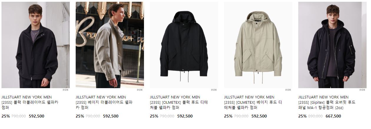 할인 품목 : 자켓, 티셔츠 등
