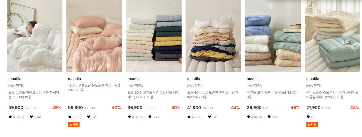할인 품목 : 이불, 주방매트 등