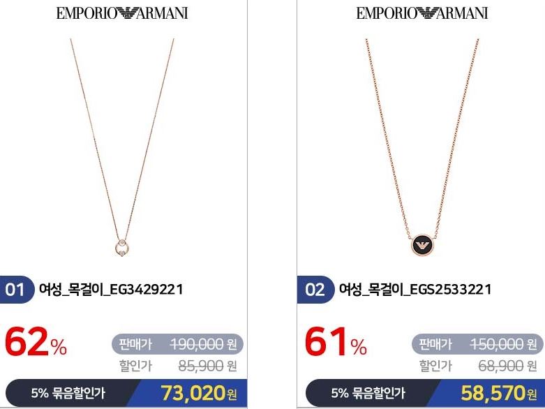 할인 품목 : 목걸이, 팔찌, 시계 등