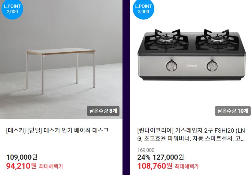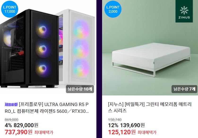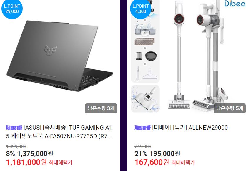 할인 품목 : 티비, 냉장고, 컴퓨터 등