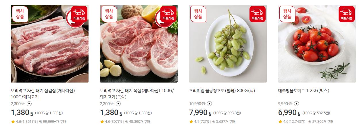 할인 품목 : 축산물, 가공식품, 과일 등