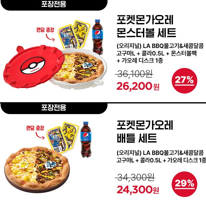 할인 메뉴 : 포켓몬가오레 몬스터볼 세트, 포켓몬가오레 배틀 세트 등