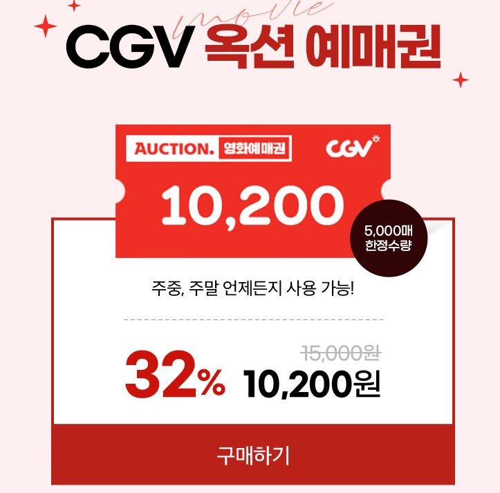 CGV 영화예매권 32% 할인