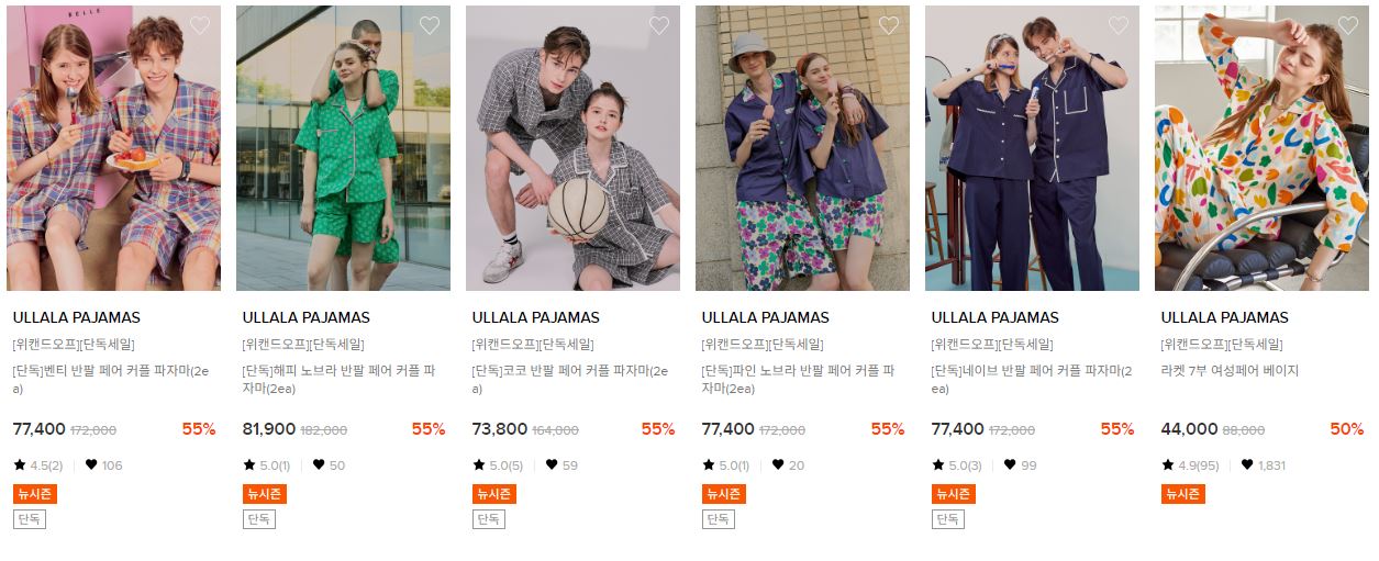울랄라파자마 다양한 제품을 할인 판매하네요.
