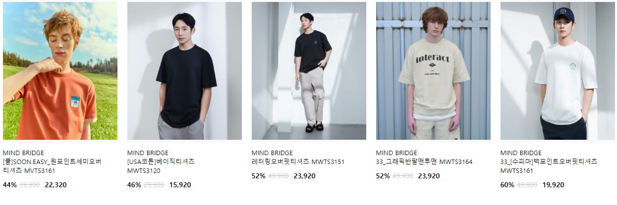 할인 품목 : 티셔츠, 팬츠 등