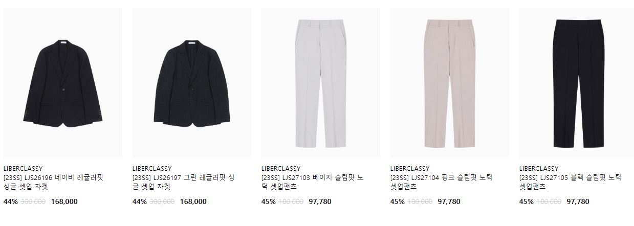 할인 품목 : 자켓, 셔츠, 팬츠 등