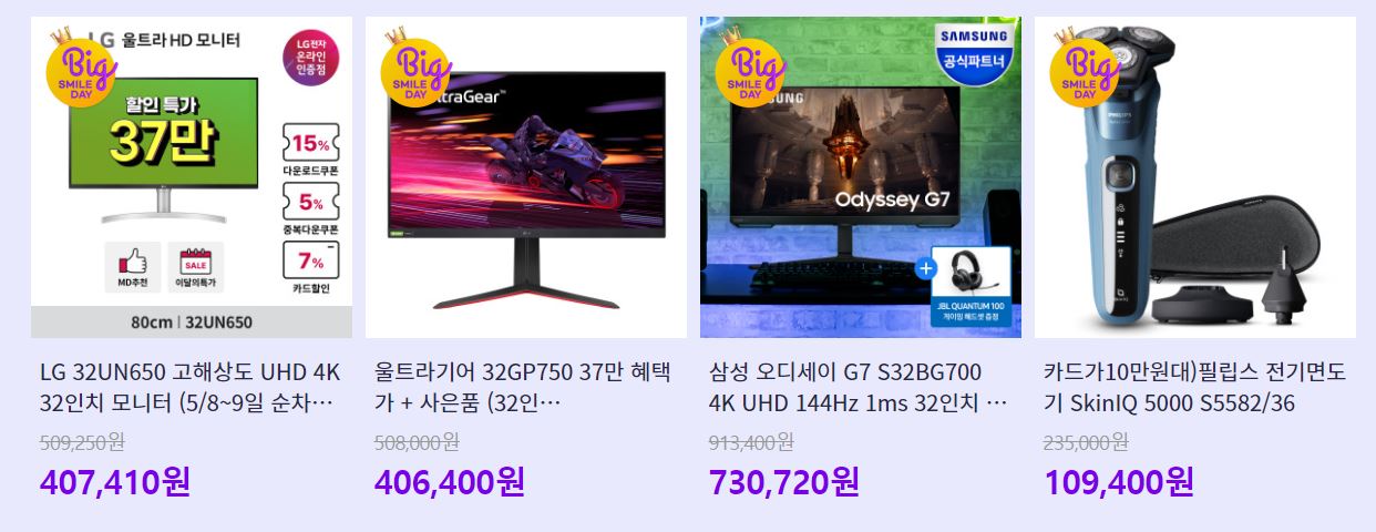 할인 품목 : 노트북, 모니터, 휴대폰 등