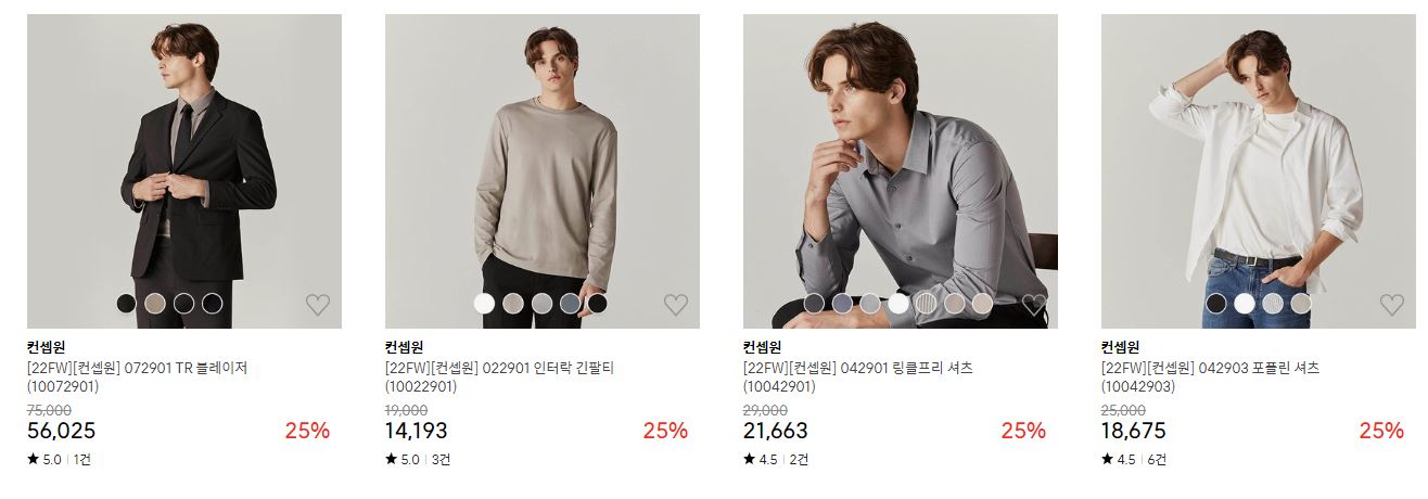 할인 품목 : 자켓, 티셔츠, 팬츠 등