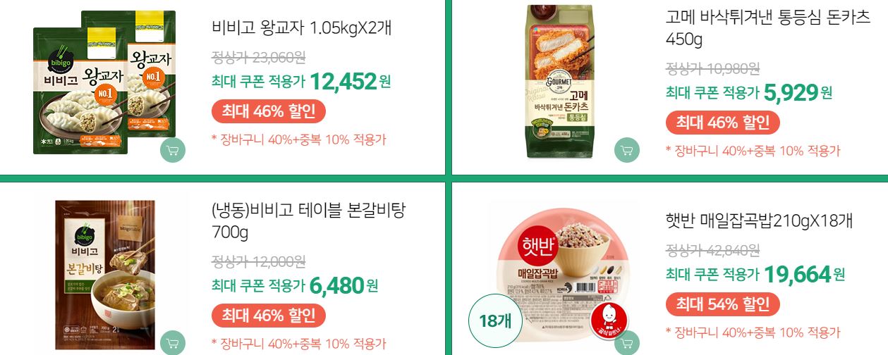 할인 품목 : 만두, 햇반 등