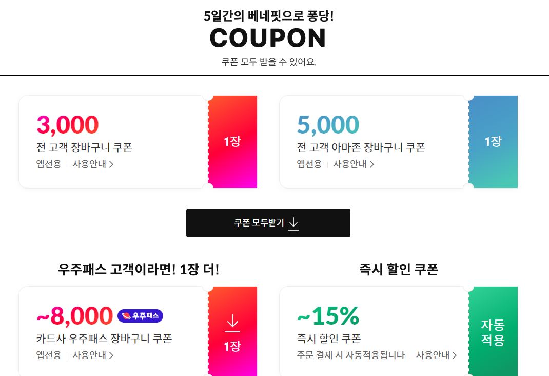 장바구니쿠폰, 즉시 할인 쿠폰 등
