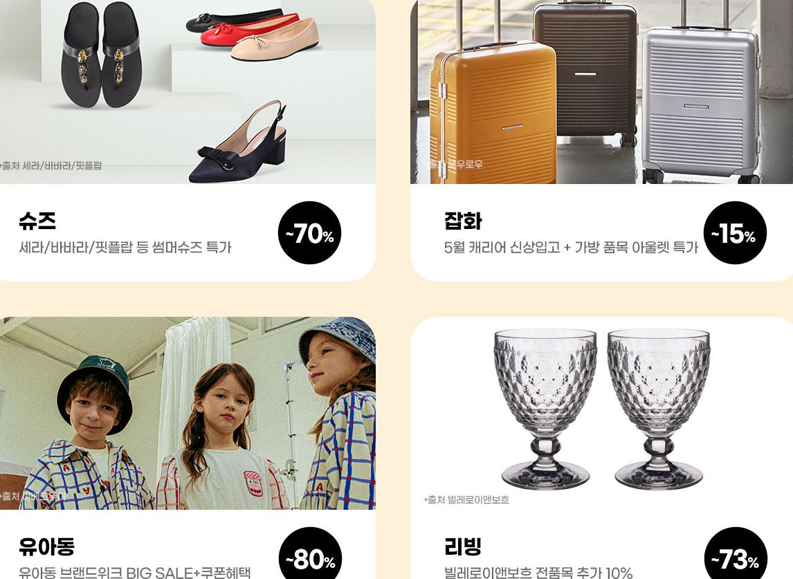 할인 품목 : 의류, 가방, 신발 등