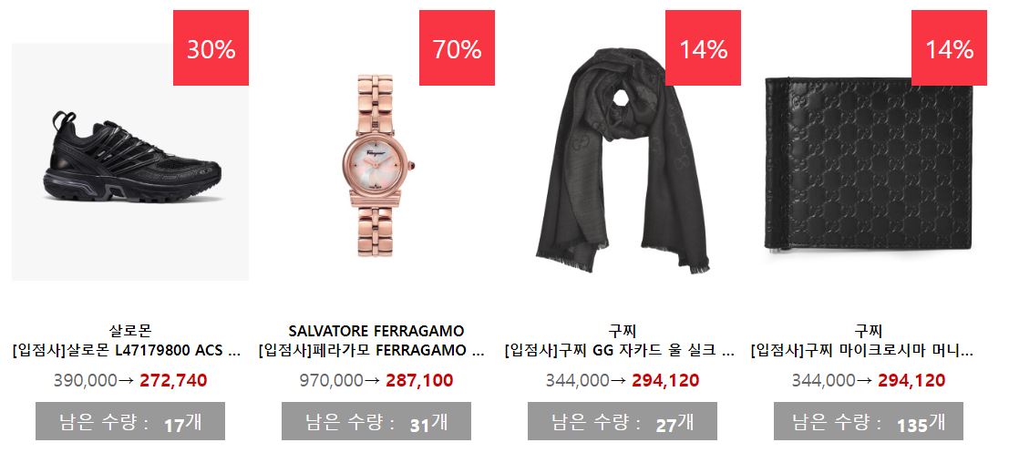할인 품목 : 가방, 시계, 지갑, 신발 등