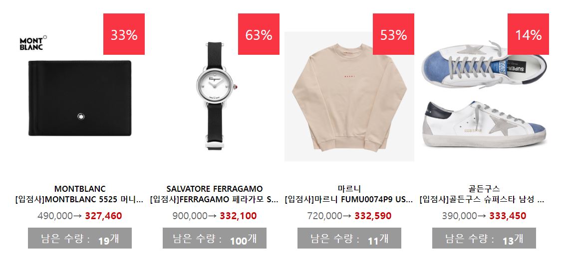 할인 품목 : 가방, 시계, 지갑, 신발 등