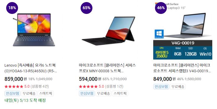 할인 품목 : 피규어, 노트북, 로봇청소기 등