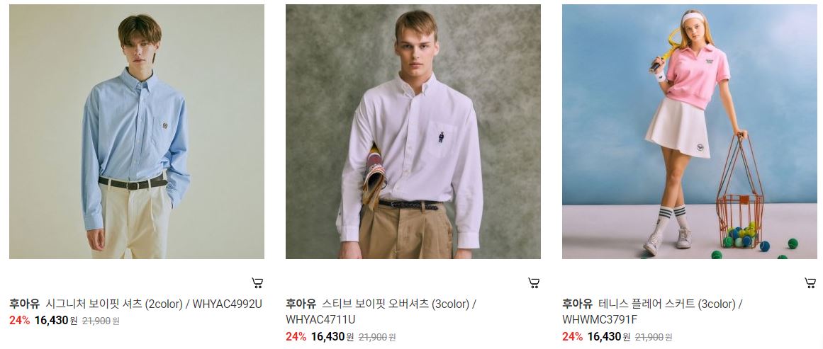 할인 품목 : 티셔츠, 팬츠, 셔츠 등