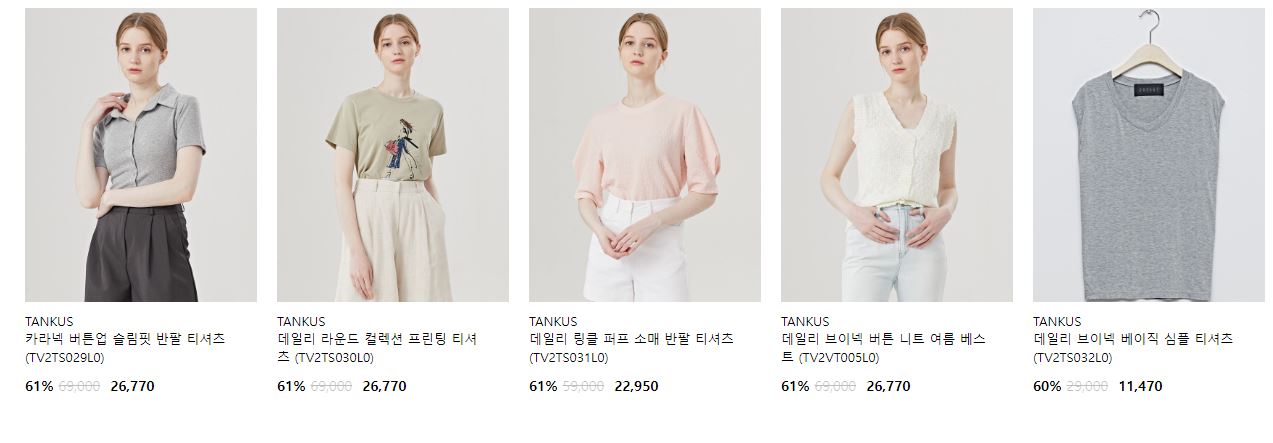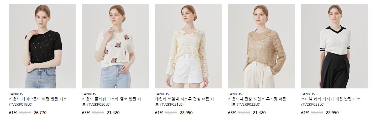 할인 품목 : 가디건, 티셔츠, 원피스 등