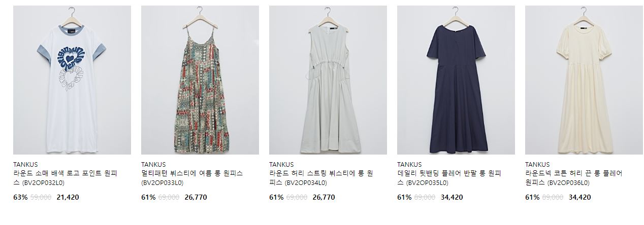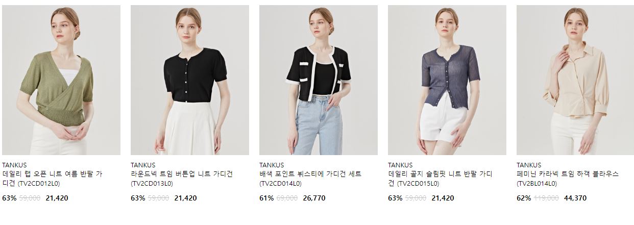 할인 품목 : 가디건, 티셔츠, 원피스 등
