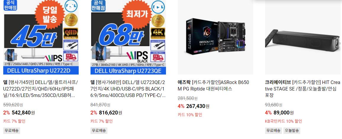할인 품목 : 모니터, 컴퓨터 부품 등