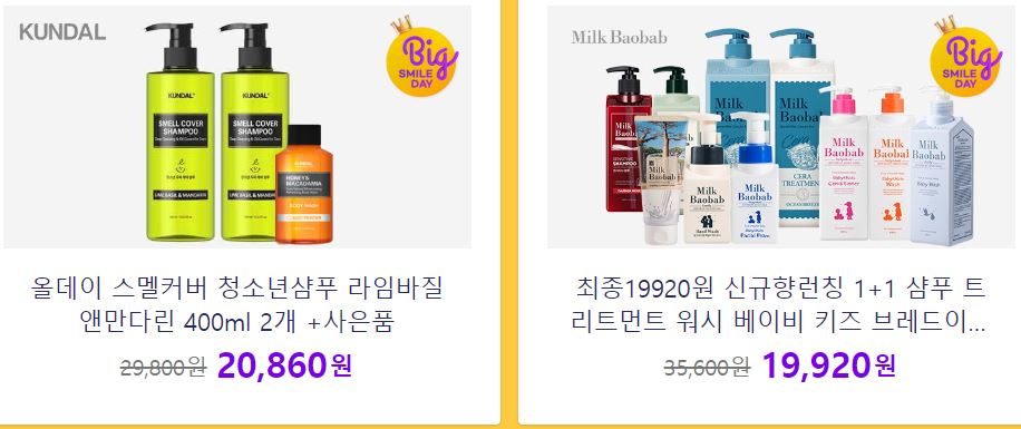 할인 품목 : 샴푸, 화장품 등