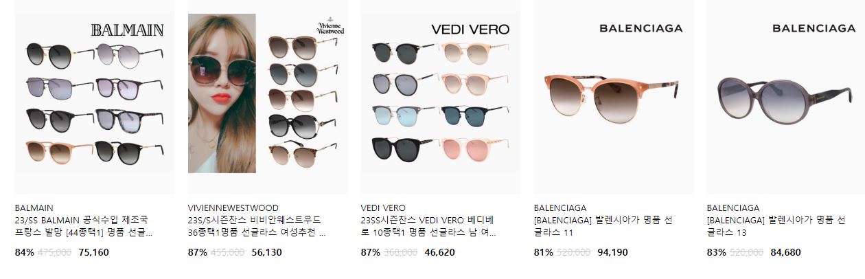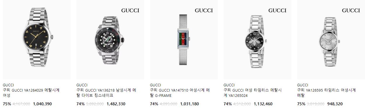 할인 품목 : 시계, 선글라스, 의류 등