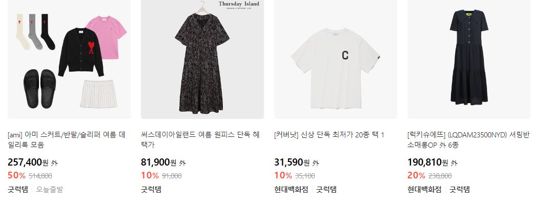 할인 품목 : 의류, 신발, 가방 등