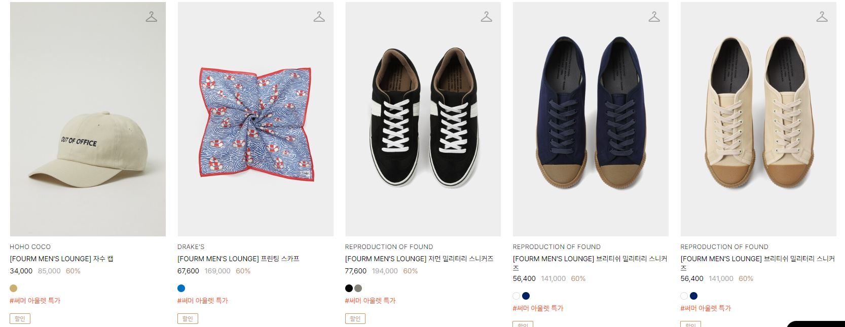 할인 품목 : 티셔츠, 원피스, 신발 등