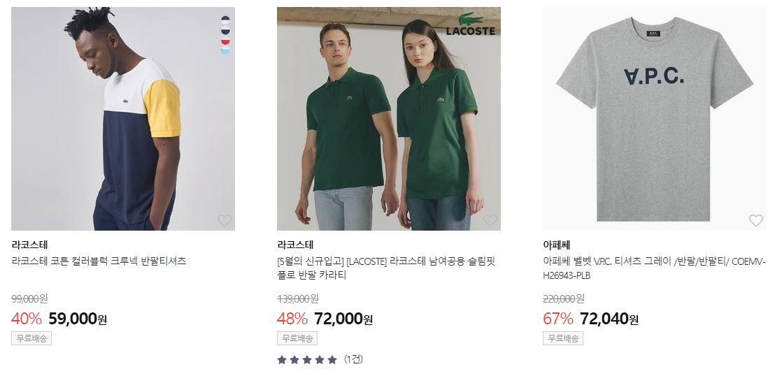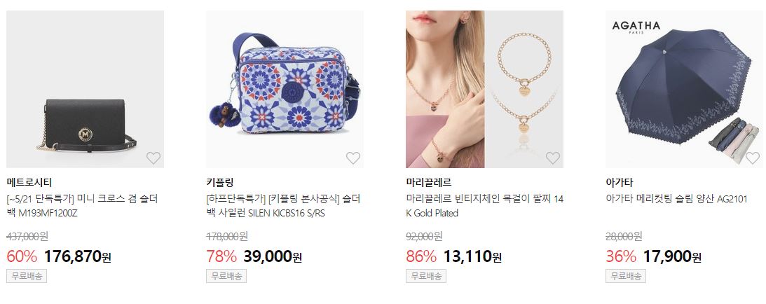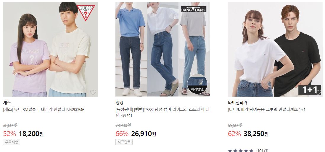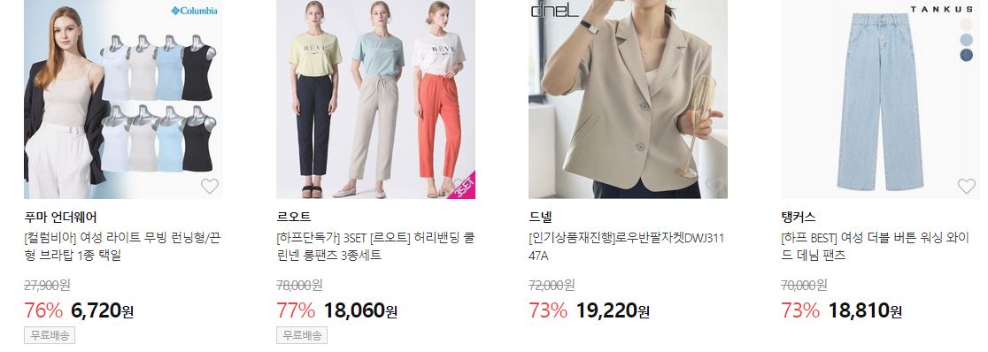 할인 품목 : 티셔츠, 속옷, 가방 등