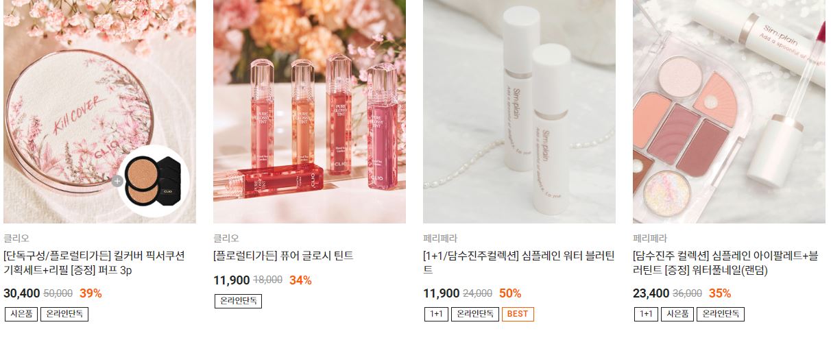 할인 품목 : 클렌징폼, 틴트, 선크림 등
