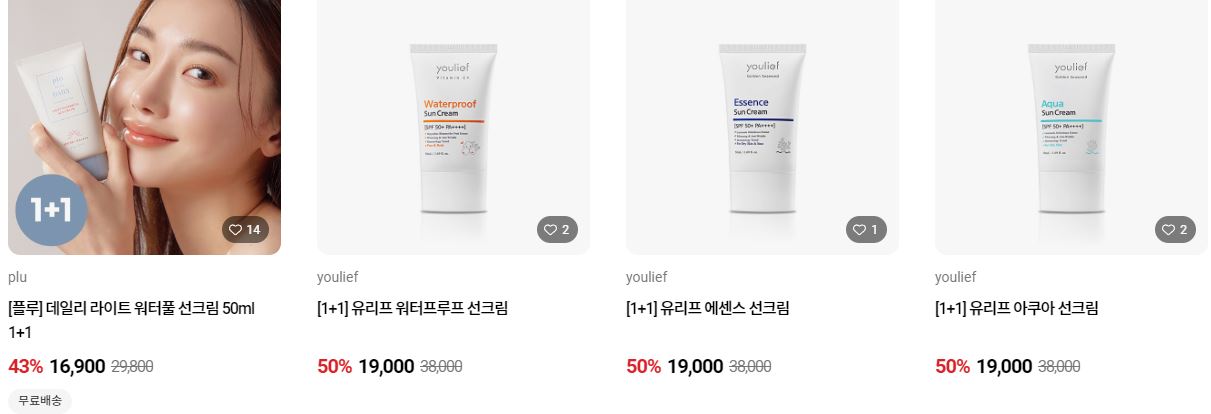 할인 품목 : 선크림, 바디워시, 고데기 등