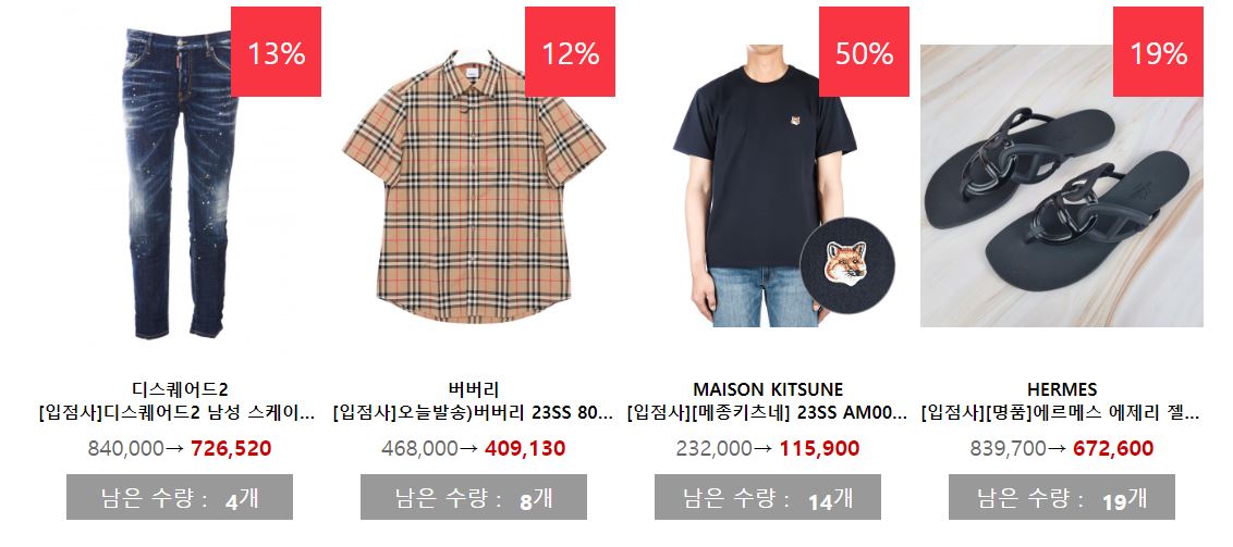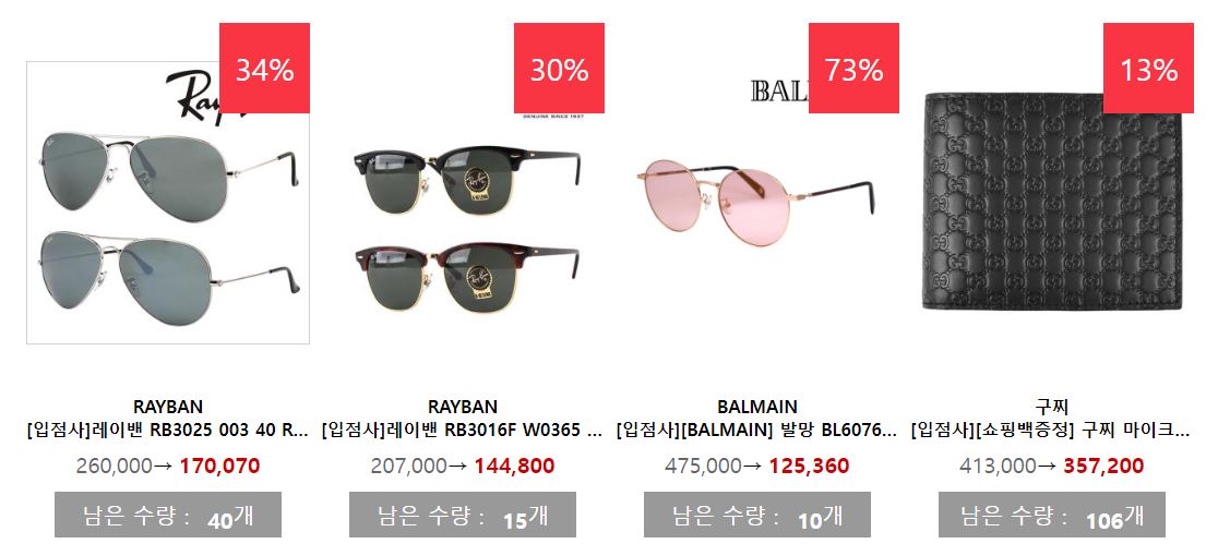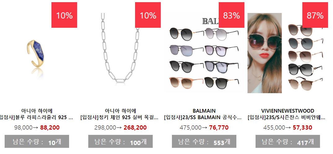 할인 품목 : 의류, 선글라스, 가방, 신발 등