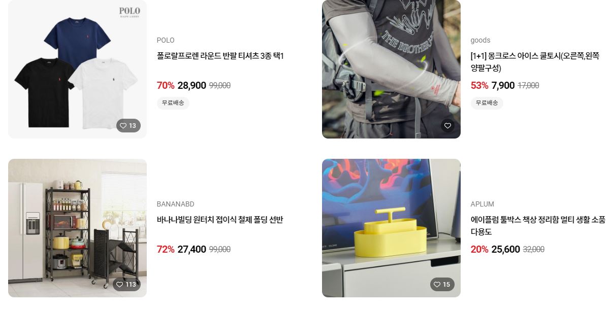 할인 품목 : 의류, 가전, 식품 등