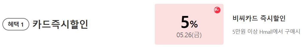 5만원 이상 BC카드 결제시 5% 할인
