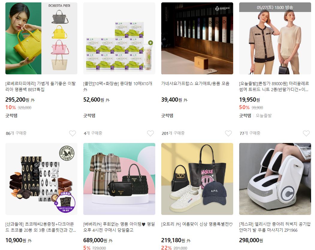 할인 품목 : 의류, 가방, 식품 등