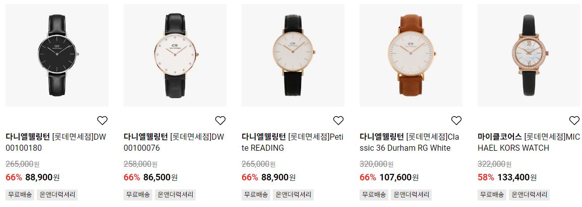 할인 품목 : 시계, 의류, 신발 등