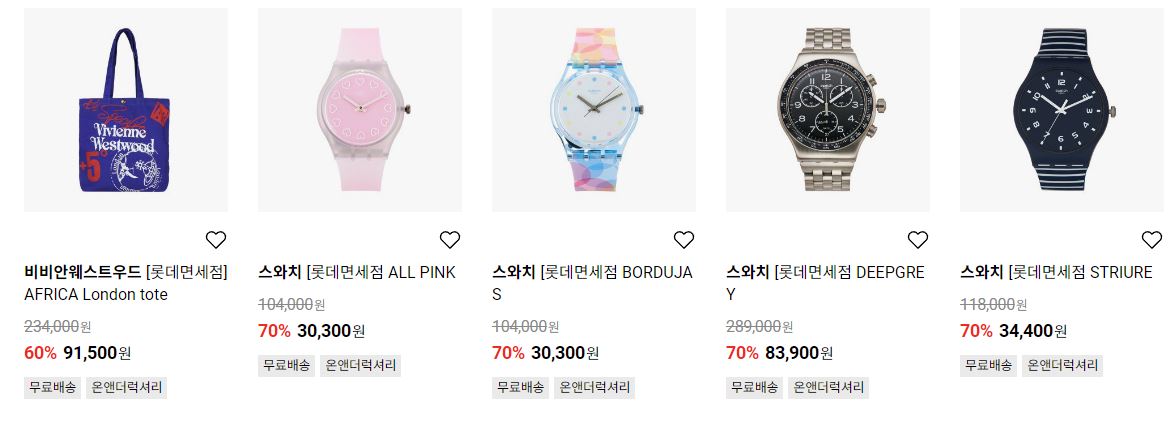할인 품목 : 시계, 의류, 신발 등