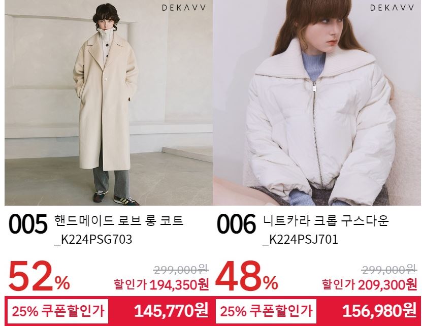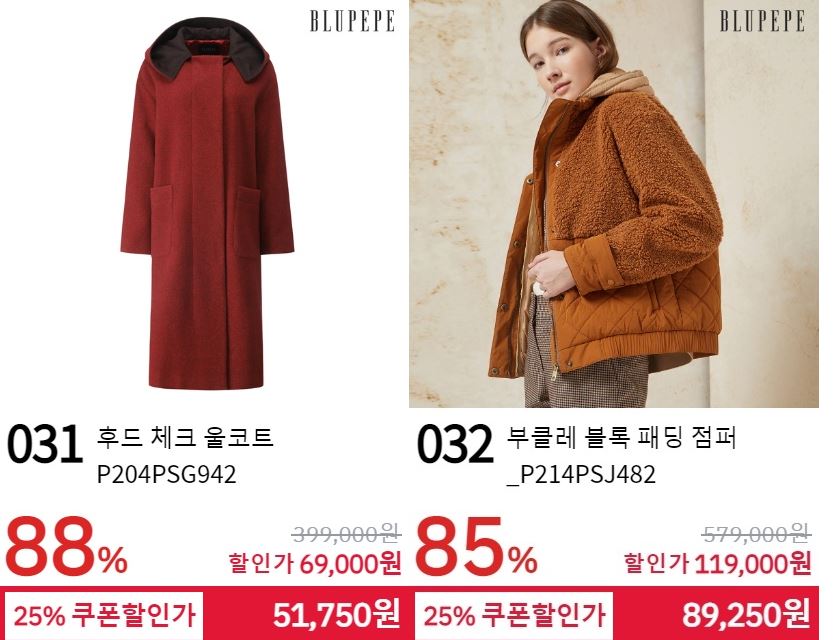 할인 품목 : 코트, 점퍼 등