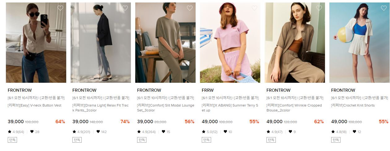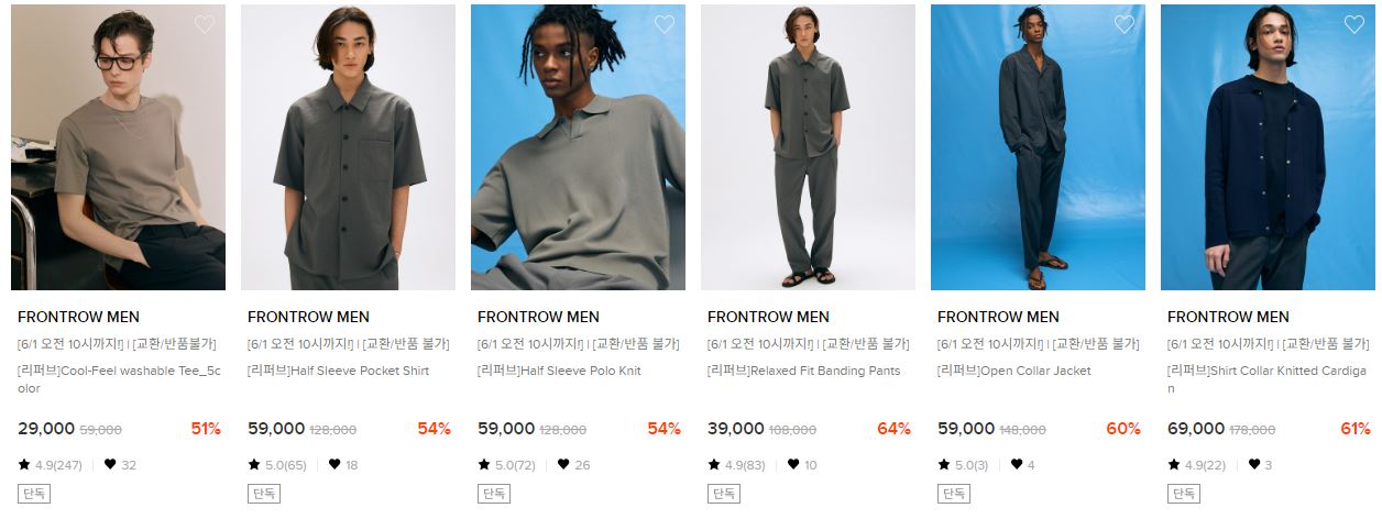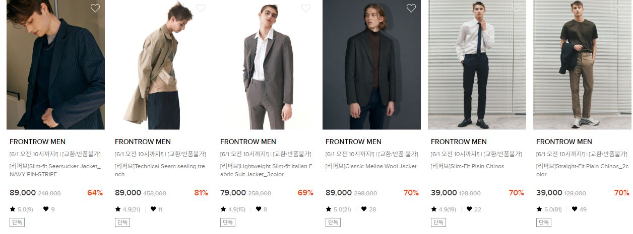프론트로우 다양한 제품을 할인 판매하네요.