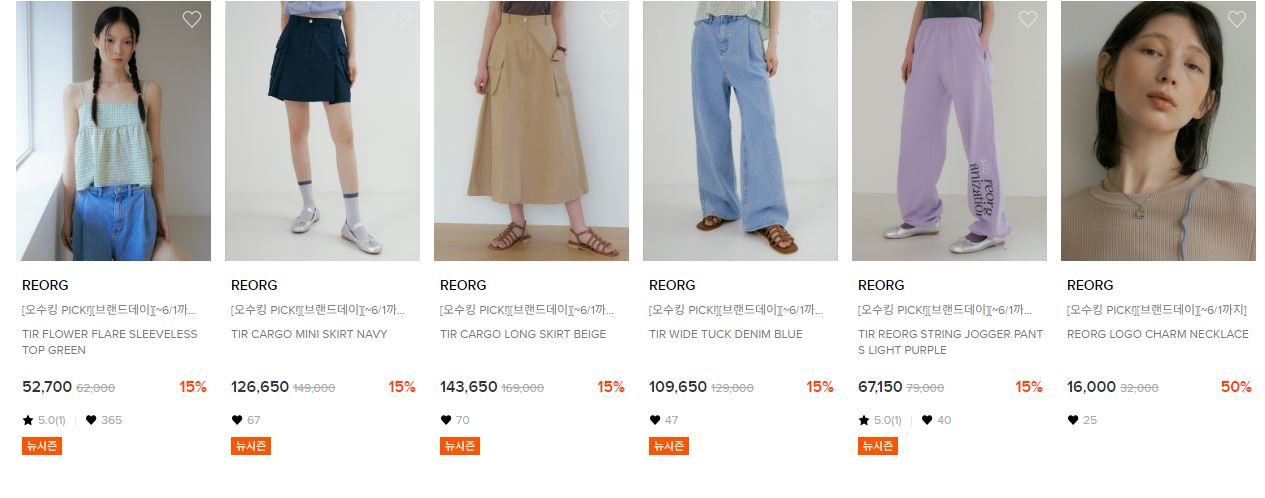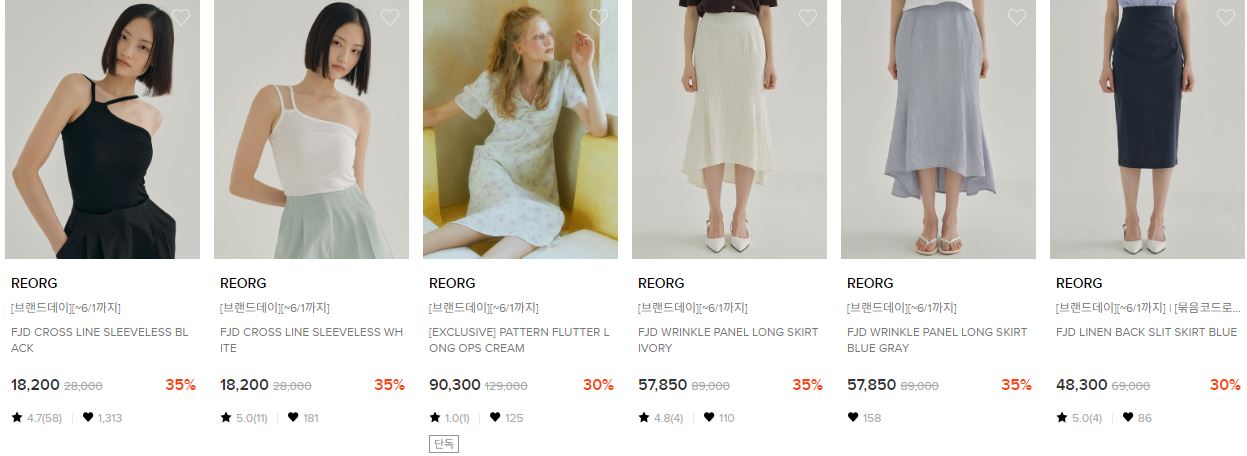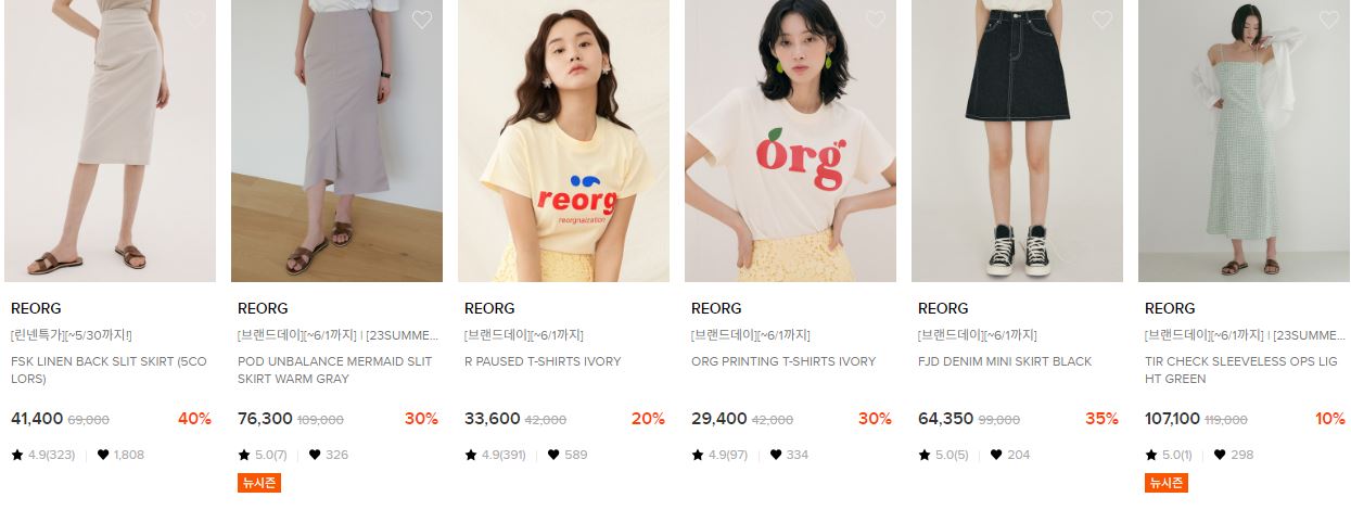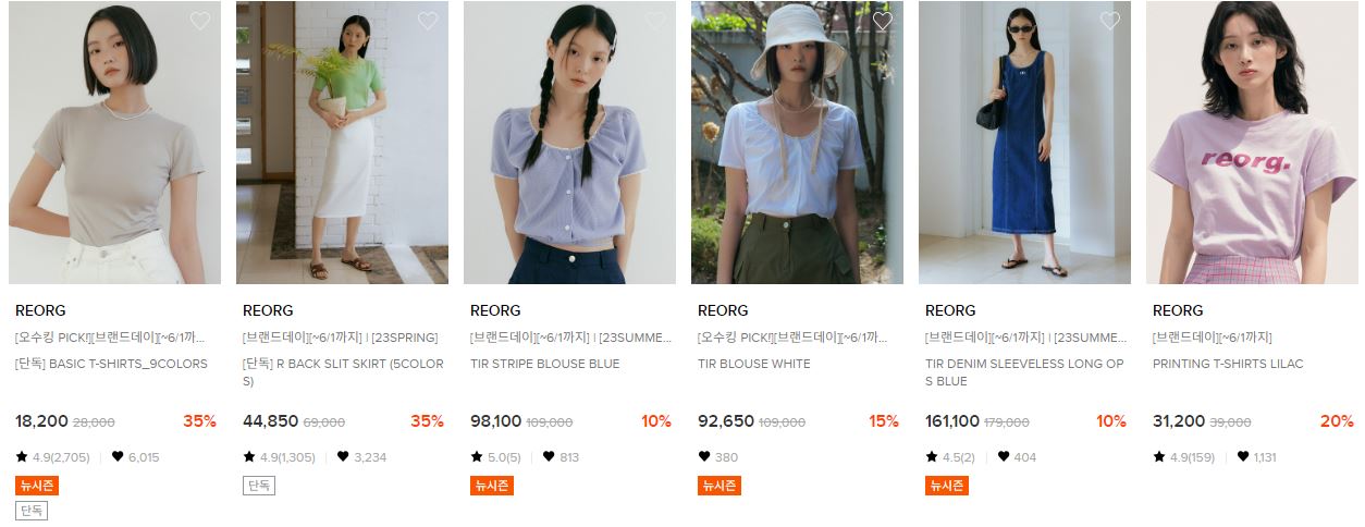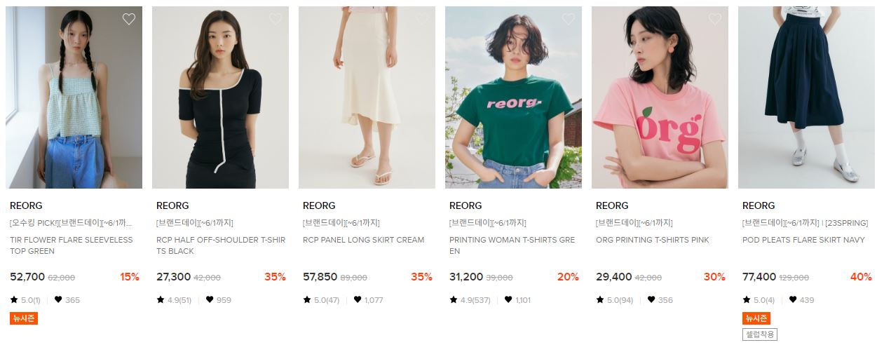 REORG 다양한 제품을 할인 판매하네요.
