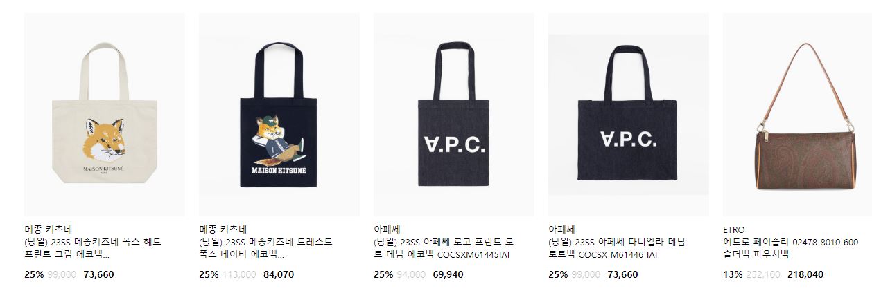 할인 품목 : 의류, 신발, 가방 등