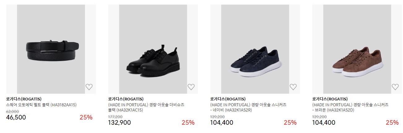 할인 품목 : 티셔츠, 셔츠, 구두 등