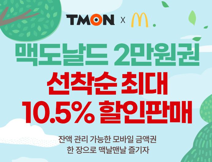 맥도날드 2만원권 10.5% 할인 정보 [링크]