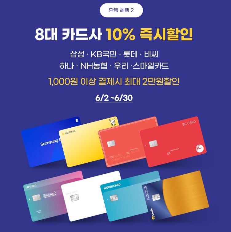 8대 카드사 10% 즉시 할인