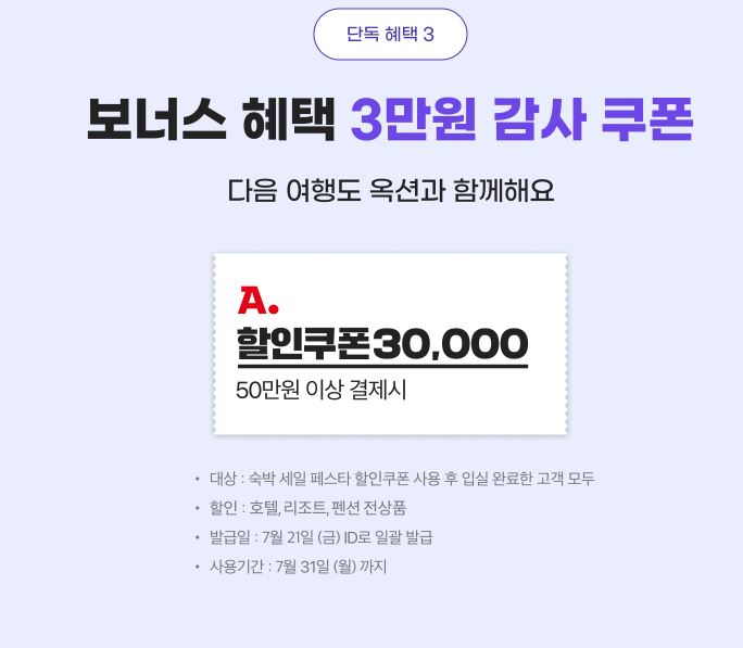 국내숙박 3만원 할인 쿠폰 매일 오전 10시 발급