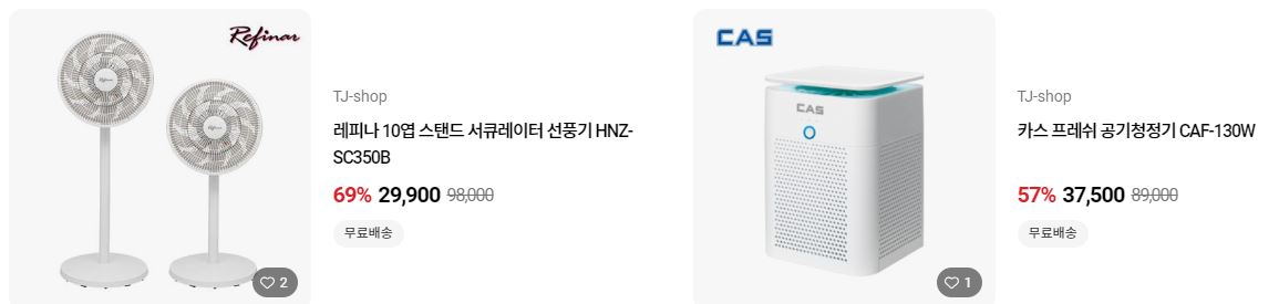 할인 품목 : 의류, 가전, 식품 등